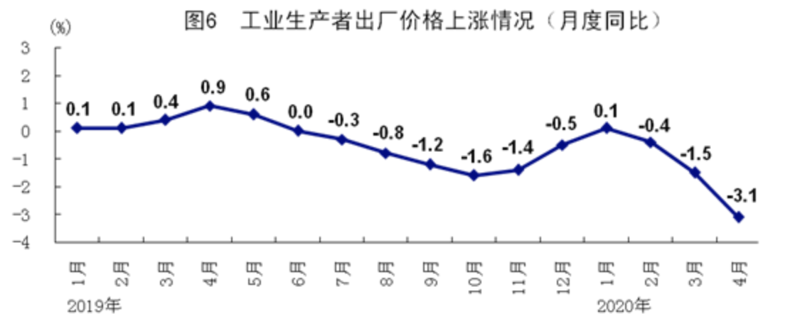 4月份,全國(guó)工業(yè)生產(chǎn)者出廠價(jià)格同比下降3.1%,降幅比3月份擴(kuò)大1.6個(gè)百分點(diǎn);環(huán)比下降1.3%。工業(yè)生產(chǎn)者購(gòu)進(jìn)價(jià)格同比下降3.8%,環(huán)比下降2.3%。1-4月份,全國(guó)工業(yè)生產(chǎn)者出廠價(jià)格和工業(yè)生產(chǎn)者購(gòu)進(jìn)價(jià)格同比分別下降1.2%和1.5%。